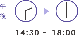 ■ 午後 14:00~17:30(初めての方、久しぶりに来院される方は16:00まで)